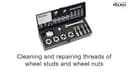 För rengöring och reparation av skadade inre och yttre gängor på hjulbultar och hjulmuttrar på bilar/trailers mm.
